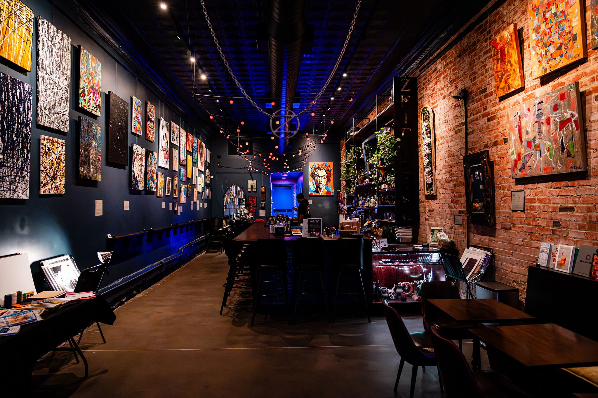 Zeitgeist is a creative hub where art, community, and a little bit of magic come together. Our rotating gallery features work from more than fifty local artists, with new show openings every other month and in our art retail displays. Stop in for a drink, explore the gallery, and connect.